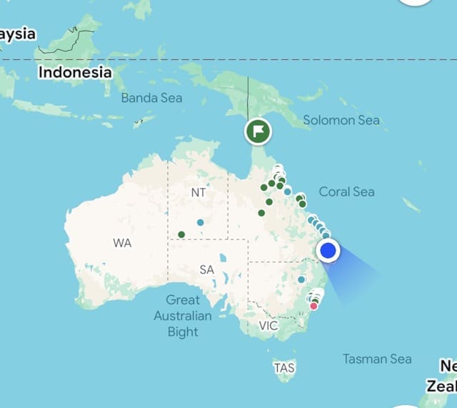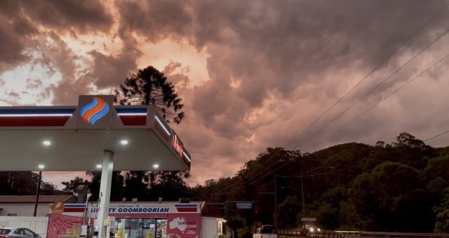 Nach einem wunderschönen Tag auf Fraser Island, der größten Sandinsel der Welt, braute sich am Horizont etwas zusammen, das uns später an diesem Tag noch eine gehörige Portion Angst einjagen wird. Auf dem Regenradar sah es so aus, als könnten wir das Gewitter umfahren, doch das Gegenteil war der Fall. Mitten in einem rund 50 auf 50 Km großen Waldgebiet, in völliger Abgeschiedenheit gerieten wir direkt in die Zelle.