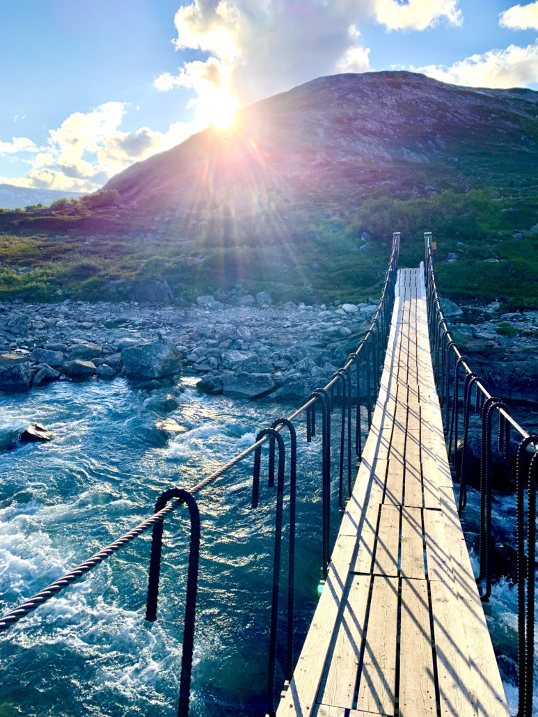 In Dombås nahmen wir den Fuß vom Gas. Im Staun- Gang passierten wir die höchsten Berge Norwegens und durchquerten den Breheimen Nationalpark, eine karge und felsige Hochebene. An rauschenden Gebirgsbächen und beeindruckenden Wasserfällen vorbei, schlängelt sich hier eine lange, schmale Straße über unzählige Kehren die über 1100 Höhenmeter hinab ins saftige, grüne Tal, dem Geirangerfjord, eines der bekanntesten Sehenswürdigkeiten Norwegens.